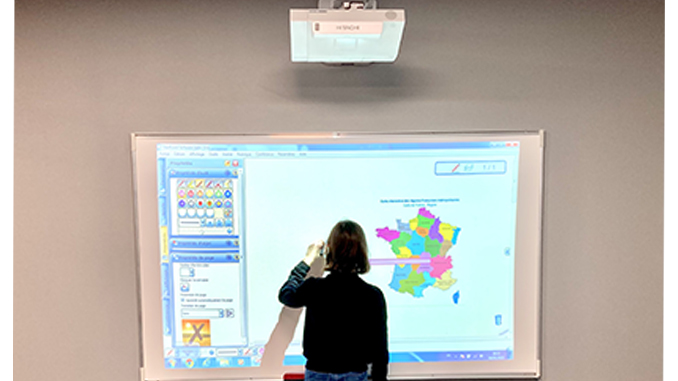 Le vidéoprojecteur interactif permet de se lancer dans l’expérience interactive en projetant son écran d’ordinateur grâce à cet outil numérique. Il est également facile d’accès et d’interaction : grâce aux capteurs, vous contrôlez et annotez tout le contenu de votre ordinateur directement sur votre surface de projection.
